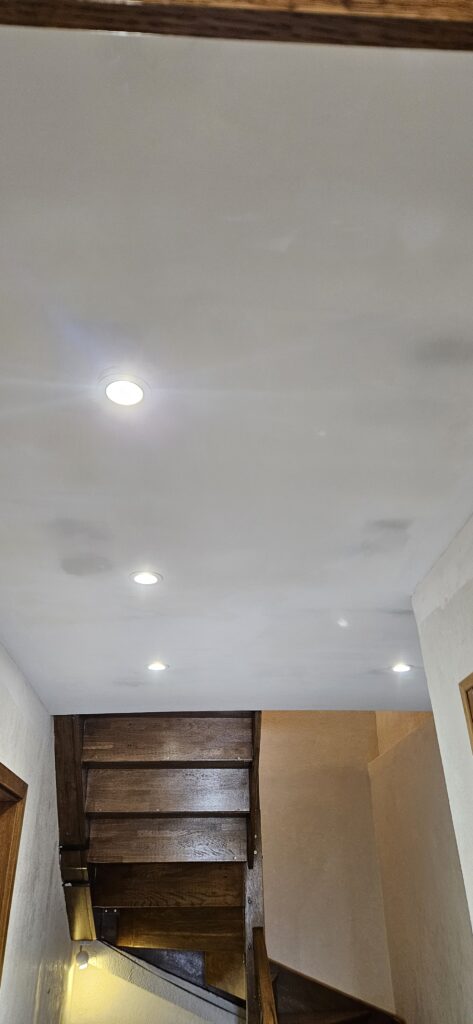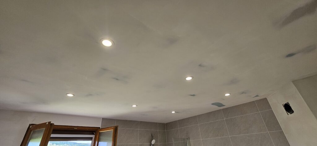 • Remplacement du luminaire en point centrale par des spots adaptés aux pièces d’eaux.